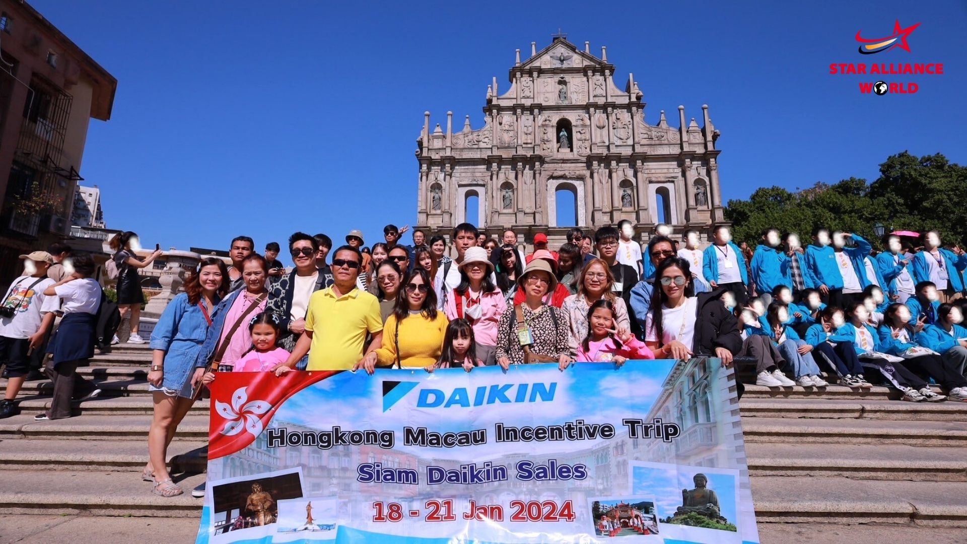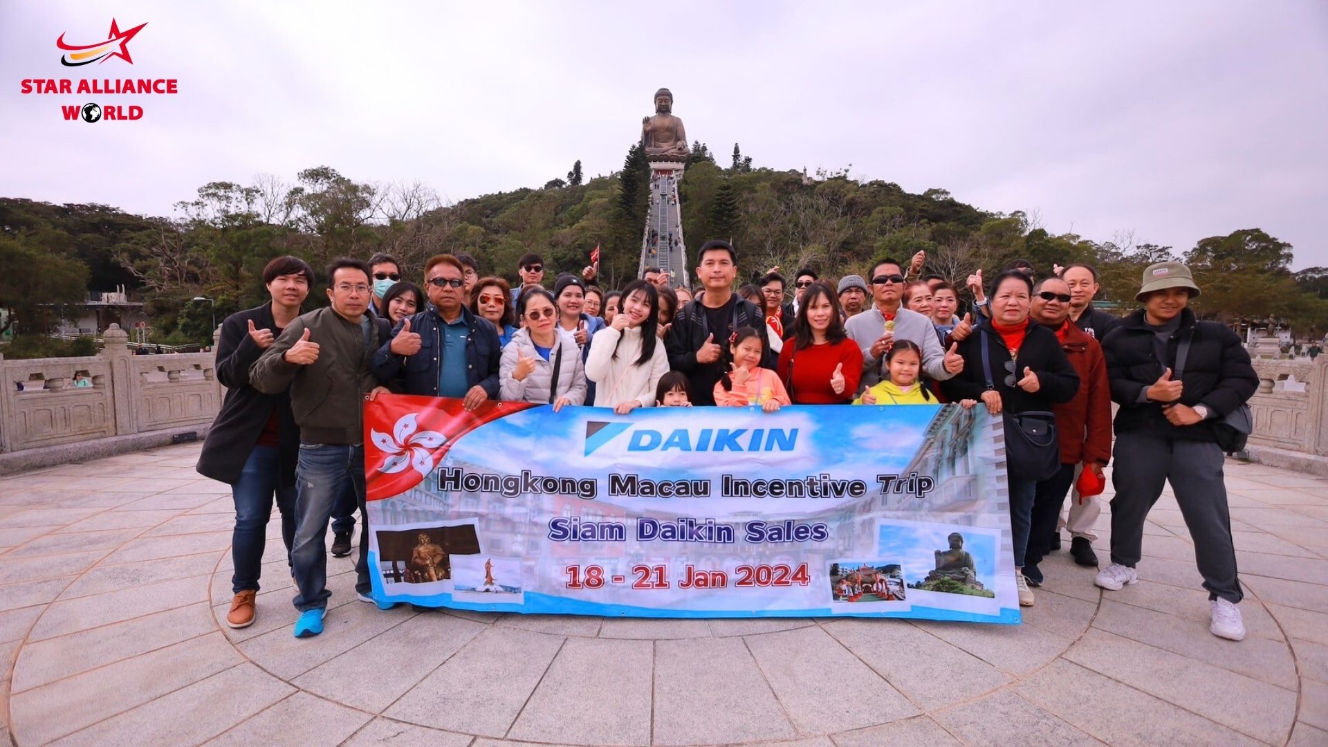 Hongkong Macau 18 - 21 Jan 2024 (Group A) กรุ๊ปแรกของปี 2024 กับทริปไหว้พระวัดดังเสริมบารมี มูให้ปัง มูให้เฮง กับสยามไดกิ้นเซลล์ เมื่อวันที่ 18 - 21 มกราคม 2567 ที่ผ่านมา ทางบริษัทสตาร์อัลไลแอนซ์เวิลด์ ได้รับความไว้วางใจจากทางบริษัทสยามไดกิ้นเซลล์ จัดทริปท่องเที่ยวไปยังประเทศฮ่องกงและมาเก๊า ให้กับตัวแทนจำหน่ายเครื่องปรับอากาศไดกิ้น เพื่อให้ลูกค้าทุกท่านได้ท่องเที่ยวพักผ่อนประจำปี สำหรับการบริการตลอดทริปนี้ ไม่ว่าจะเป็นร้านอาหาร สถานที่ท่องเที่ยวต่าง ๆ การเดินทาง ที่พัก รวมถึงหัวหน้าทัวร์ล้วนแล้วแต่ผ่านการคัดสรรมาเป็นอย่างดี เพื่อให้ได้มาซึ่งสิ่งที่ดีที่สุดสำหรับลูกค้า พิเศษ!! สำหรับทริปนี้ทางเราได้จัดเตรียมหัวหน้าทัวร์ที่มีความสามารถในการถ่ายภาพโดยเฉพาะไว้คอยดูแลเก็บภาพบรรยากาศ ความทรงจำ และความประทับใจให้กับผู้ร่วมเดินทางทุกท่าน เพื่อให้ทุกท่านมีความสุขกับการท่องเที่ยวและกลับมาพร้อมความประทับใจ ในโอกาสหน้าหวังเป็นอย่างยิ่งว่าทางเราจะได้รับใช้ทุกท่านอีกครั้ง ขอขอบพระคุณค่ะ